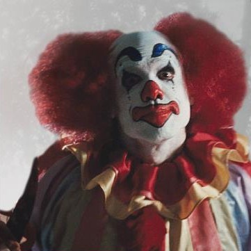 He has no unusual physical features, and bears the stereotypical appearance of a clown: poofy red hair, red nose, colorful makeup, and baggy, multi-colored clothes with frilly trim. He dispatches of victims by stabbing them with a long, curved knife while giggling and laughing hysterically.